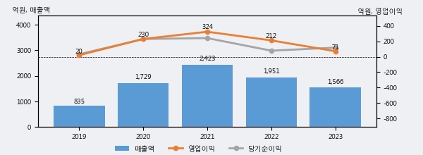 싸이맥스의 2023년 매출액은 1566억으로 전년대비 -19.7% 하락했고, 영업이익 역시 71억으로 전년대비 -66.4% 하락했다. 이 회사의 매출액 증감률과 영업이익 증감률은 각각 코스닥 하위 21%, 하위 28%에 해당된다.