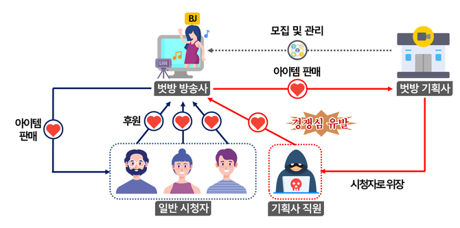 BJ와 같은 패거리가 시청자로 위장하고 수억원의 팁을 쏴서 다른 시청자들도 팁을 쏘게 하는 팁 경쟁 수법을 사용한다.