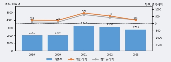 유진테크는 2023년 매출액 2765억원과 영업이익 243억원을 기록했다. 전년대비 매출은 -11.0%, 영업이익은 -54.6% 각각 하락했다. 이 회사의 매출액 증감률과 영업이익 증감률은 각각 코스닥 하위 33%, 하위 33%에 해당된다.
