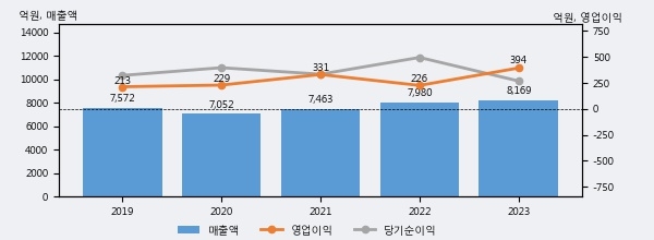 최근 3년간의 실적을 살펴보면 안정적 성장세를 보이고 있다. 최근 3년간 매출로 볼 때 매년 증가하고 있다. 다만 최근에 그 증가폭이 다소 감소하고 있다.