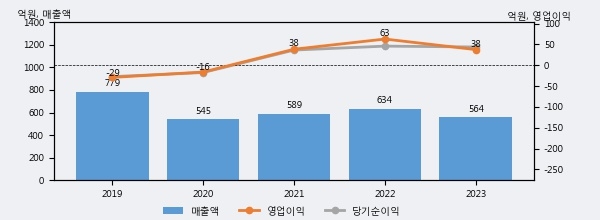 진도의 2023년 매출액은 전년대비 -11.1% 줄어든 564억원이고, 영업이익 역시 전년대비 -40.3% 줄어든 38억원을 기록했다. 이 회사의 매출액 증감률과 영업이익 증감률은 각각 코스피 하위 24%, 하위 29%에 해당된다.