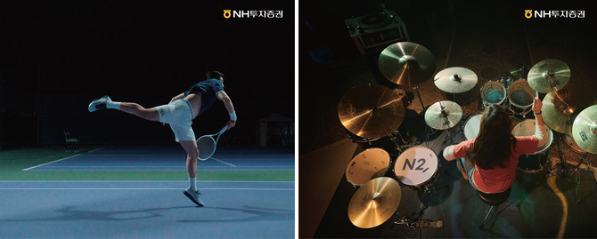 '테니스편'과 '드럼편' 등 두 가지 테마로 촬영된 이번 CF에서 자기 성장에 노력하는 사람들이 NH투자증권에 모인다는 점을 표현했다고 이 회사는 전했다.