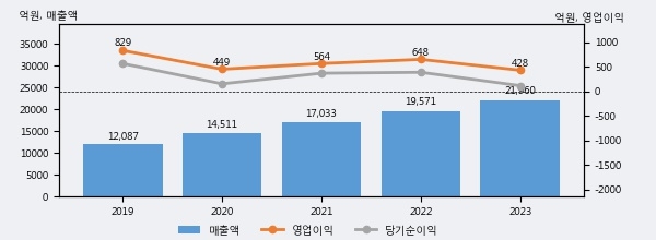 최근 3년간의 실적을 살펴보면 안정적 성장세를 보이고 있다. 최근 3년간 매출로 볼 때 매년 꾸준히 증가하고 있다. 다만 최근에 그 증가폭이 다소 감소하고 있다.