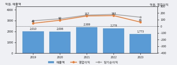 삼영전자는 2023년 매출액 1773억원과 영업이익 65억원을 기록했다. 전년대비 매출은 -22.2%, 영업이익은 -60.3% 각각 하락했다. 이 회사의 매출액 증감률과 영업이익 증감률은 각각 코스피 하위 9%, 하위 21%에 해당된다.