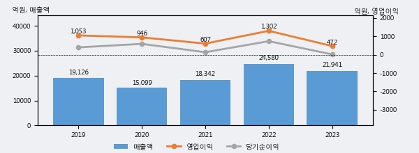 한솔제지의 2023년 매출액은 2조 1941억으로 전년대비 -10.7% 하락했고, 영업이익 역시 472억으로 전년대비 -63.7% 하락했다. 이 회사의 매출액 증감률과 영업이익 증감률은 각각 코스피 하위 25%, 하위 20%에 해당된다.