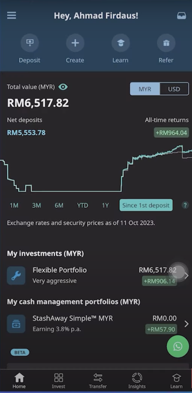 [StashAway 앱 메인화면 사진 캡처]