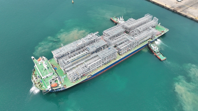 현재 이동 중인 플랜트 모듈은 총 18개, 무게 4264t 규모로 앞으로 약 2달간의 항해를 거쳐 텍사스주 오렌지카운티 현장에 설치될 예정이다.