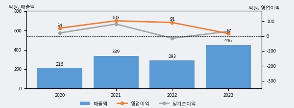 최근 실적을 살펴보면 2023년 매출액이 최근 4년 중 가장 높은 실적을 기록했음을 알 수 있다. 이전 최고 실적이었던 2021년 보다도 31.9%(107억 9천만원) 늘어난 것으로 나타났다.