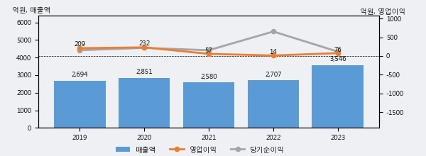 최근 실적을 살펴보면 2023년 매출액이 최근 5년 중 가장 높은 실적을 기록했음을 알 수 있다. 이전 최고 실적이었던 2020년 보다도 24.4%(694억 7천만원) 늘어난 것으로 나타났다.