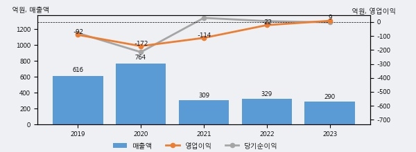 육일씨엔에쓰의 2023년 매출액은 290억으로 전년대비 -11.8% 하락했고, 영업이익은 9억으로 흑자전환했다. 이 회사의 매출액 증감률과 영업이익 증감률은 각각 코스닥 하위 32%, 상위 9%에 해당된다.
