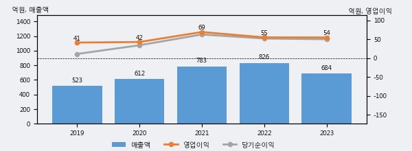 이랜시스의 2023년 매출액은 684억으로 전년대비 -17.1% 하락했고, 영업이익 역시 54억으로 전년대비 -0.4% 하락했다. 이 회사의 매출액 증감률과 영업이익 증감률은 각각 코스닥 하위 24%, 상위 42%에 해당된다.