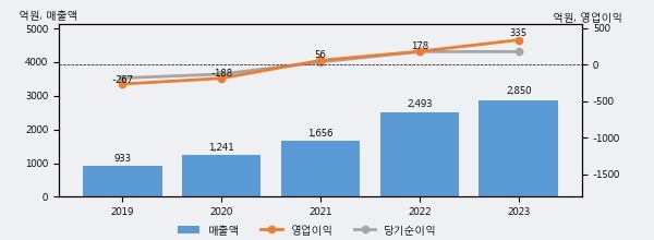 최근 3년간의 실적을 살펴보면 안정적 성장세를 보이고 있다. 최근 3년간 매출로 볼 때 매년 꾸준히 증가하고 있다. 다만 최근에 그 증가폭이 다소 감소하고 있다.