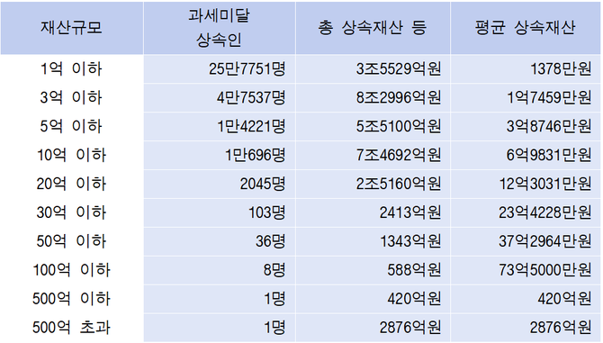 민주당이 우려하는 5억~10억원 상속재산 고인 중 상속세를 1원 한 닢 내지 않는 사람은 1만696명에 달한다.