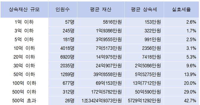 2022년 평균 실효세율은 3.1%. 평균 재산은 7억5173만원, 평균 상속세는 2356만원 정도다.