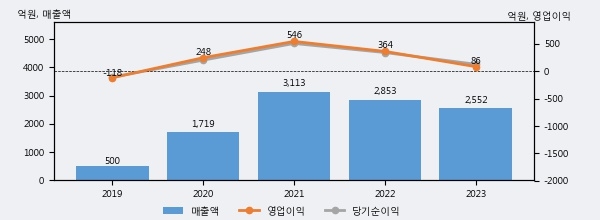 와이씨의 2023년 매출액은 전년대비 -10.5% 줄어든 2552억원이고, 영업이익 역시 전년대비 -76.5% 줄어든 86억원을 기록했다. 이 회사의 매출액 증감률과 영업이익 증감률은 각각 코스닥 하위 33%, 하위 26%에 해당된다.
