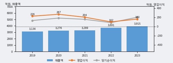 최근 3년간의 실적을 살펴보면 안정적 성장세를 보이고 있다. 최근 3년간 매출로 볼 때 매년 꾸준히 증가하고 있다. 다만 최근에 그 증가폭이 다소 감소하고 있다.