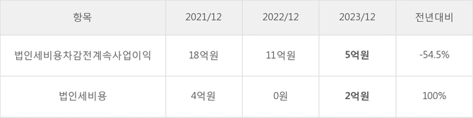 신라에스지의 지난 3년 동안 법인세 납부액 추이를 보면 2022년에는 감소했으나, 작년에는 2억원으로 증가했다.