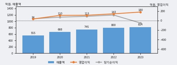 최근 3년간의 실적을 살펴보면 안정적 성장세를 보이고 있다. 최근 3년간 매출로 볼 때 매년 꾸준히 증가하고 있다. 다만 최근에 그 증가폭이 다소 감소하고 있다.