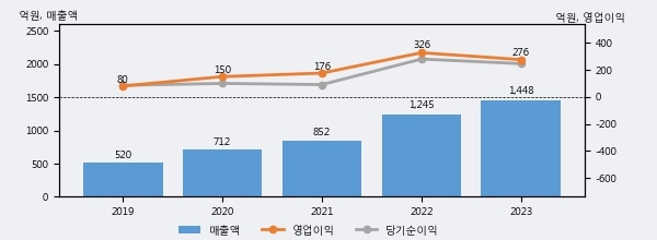 최근 3년간의 실적을 살펴보면 안정적 성장세를 보이고 있다. 최근 3년간 매출로 볼 때 매년 꾸준히 증가하고 있다. 다만 최근에 그 증가폭이 다소 감소하고 있다.