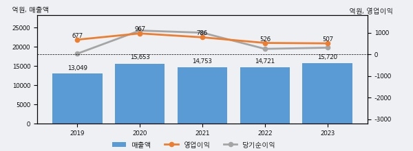 최근 실적을 살펴보면 2023년 매출액이 최근 5년 중 가장 높은 실적을 기록했음을 알 수 있다. 이전 최고 실적이었던 2020년 보다도 0.4%(66억 6천만원) 늘어난 것으로 나타났다.