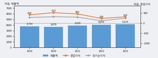 최근 3년간의 실적을 살펴보면 안정적 성장세를 보이고 있다. 최근 3년간 매출로 볼 때 매년 증가하고 있다. 다만 최근에 그 증가폭이 다소 감소하고 있다.