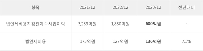 [표]대한해운 법인세 납부 추이