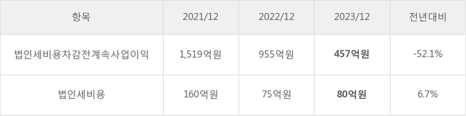골프존뉴딘홀딩스의 지난 3년 동안 법인세 납부액 추이를 보면 2022년에는 감소했으나, 작년에는 80억원으로 증가했다.