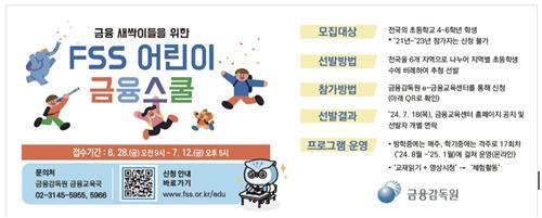 (조세금융신문=김종태 기자) 금융감독원은 오는 28일부터 내달 12일까지 초등학교 고학년(4∼6학년)을 대상으로 금융교육을 제공하는 'FSS 어린이 금융스쿨' 4기를 모집한다고 27일 밝혔다.