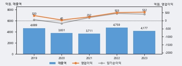백산은 2023년 매출액 4177억원과 영업이익 532억원을 기록했다. 전년대비 매출은 -12.2% 하락했고, 영업이익은 5.7% 상승했다. 이 회사의 매출액 증감률과 영업이익 증감률은 각각 코스피 하위 22%, 상위 47%에 해당된다.