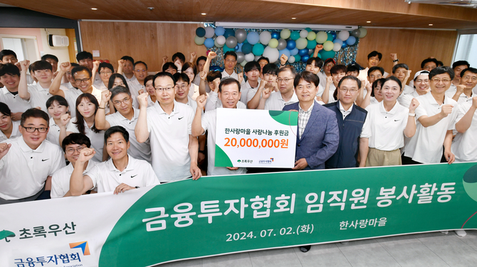 (조세금융신문=송기현 기자) 금융투자협회는 2일 임직원 75여명이 경기도 광주의 장애인 생활시설인 초록우산 어린이재단 한사랑마을에서 봉사활동을 실시하고 기부금 2천만원을 전달했다고 밝혔다.