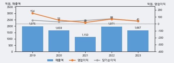 제이엔케이글로벌의 2023년 매출액은 전년대비 -15.4% 줄어든 1667억원이고, 영업이익 역시 전년대비 -40.3% 줄어든 41억원을 기록했다. 이 회사의 매출액 증감률과 영업이익 증감률은 각각 코스닥 하위 26%, 하위 38%에 해당된다.