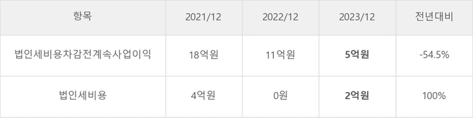 신라에스지의 지난 3년 동안 법인세 납부액 추이를 보면 2022년에는 감소했으나, 작년에는 2억원으로 증가했다.