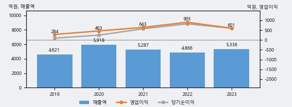 AP시스템은 2023년 매출액 5336억원과 영업이익 601억원을 기록했다. 전년대비 매출은 9.7% 상승했고, 영업이익은 -33.6% 하락했다. 이 회사의 매출액 증감률과 영업이익 증감률은 각각 코스닥 상위 33%, 하위 41%에 해당된다.