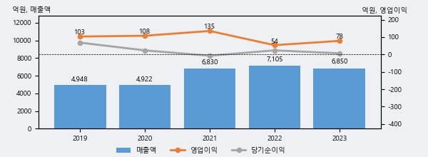 KBI메탈은 2023년 매출액 6850억원과 영업이익 78억원을 기록했다. 전년대비 매출은 -3.6% 하락했고, 영업이익은 45.9% 상승했다. 이 회사의 매출액 증감률과 영업이익 증감률은 각각 코스닥 하위 44%, 상위 23%에 해당된다.