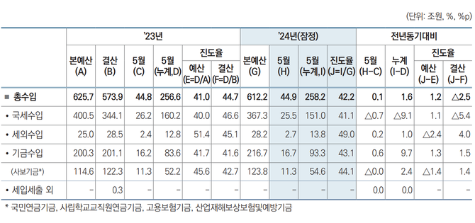 기획재정부가 11일 발표한 ‘월간 재정동향 7월호’에 따르면 5월 말 누계 총수입은 258조원, 총지출은 310.4조원에 달했다.