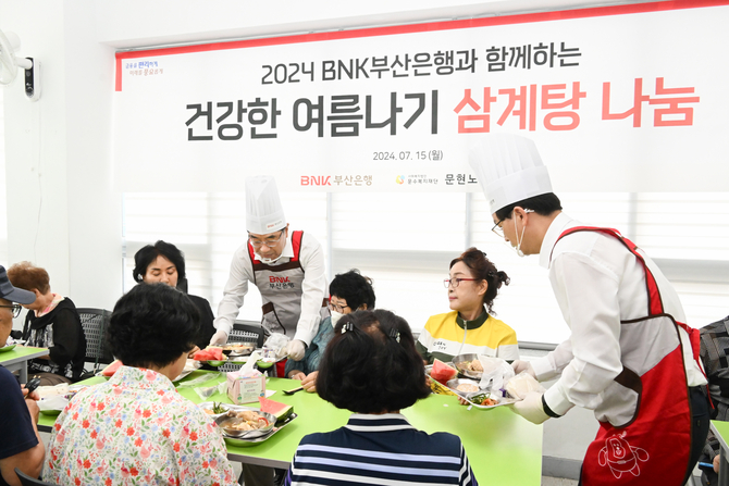 (조세금융신문=구재회 기자) BNK부산은행은 15일 오전, 부산지역 16개 구·군 소재 노인 및 종합사회복지관 57곳에 초복을 맞이하여 삼계탕 등 보양식 키트 3,000개를 전달했다고 밝혔다.