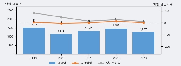 흥구석유의 2023년 매출액은 1267억으로 전년대비 -13.6% 하락했고, 영업이익 역시 1억으로 전년대비 -93.4% 하락했다. 이 회사의 매출액 증감률과 영업이익 증감률은 각각 코스닥 하위 29%, 하위 22%에 해당된다.