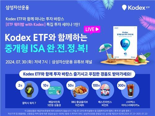 삼성자산운용 측은 "투자자들이 ISA에서 어떤 상품을 투자하면 좋을지에 대한 관심이 높은 걸 알게 돼 많은 고객이 참여할 수 있는 웹세미나를 기획했다"며 "이번 세미나를 통해 고객들이 ETF 투자로 중개형 ISA 계좌의 활용도를 높일 수 있는 계기가 될 것"이라고 기대했다.