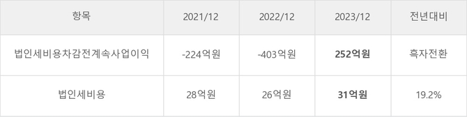 탑엔지니어링의 지난 3년 동안 법인세 납부액 추이를 보면 2022년에는 감소했으나, 작년에는 31억원으로 크게 증가했다.