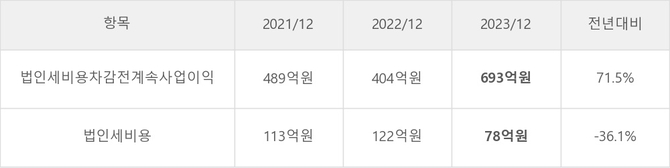 피에이치에이의 지난 3년 동안 법인세 납부액 추이를 보면 2022년에는 증가했으나, 작년에는 78억원으로 크게 감소했다.