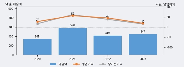 러셀의 2023년 매출액은 전년대비 6.6% 늘어난 447억원이고, 영업이익은 전년대비 -58.4% 줄어든 19억원을 기록했다. 이 회사의 매출액 증감률과 영업이익 증감률은 각각 코스닥 상위 38%, 하위 31%에 해당된다.