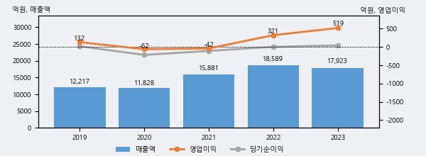 에스제이지세종은 2023년 매출액 1조 7923억원과 영업이익 519억원을 기록했다. 전년대비 매출은 -3.6% 하락했고, 영업이익은 61.7% 상승했다. 이 회사의 매출액 증감률과 영업이익 증감률은 각각 코스피 하위 40%, 상위 23%에 해당된다.