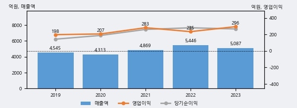 NPC은 2023년 매출액 5087억원과 영업이익 296억원을 기록했다. 전년대비 매출은 -6.6% 하락했고, 영업이익은 25.9% 상승했다. 이 회사의 매출액 증감률과 영업이익 증감률은 각각 코스피 하위 32%, 상위 36%에 해당된다.