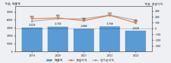 서원인텍은 2023년 매출액 2628억원과 영업이익 100억원을 기록했다. 전년대비 매출은 -17.0%, 영업이익은 -55.7% 각각 하락했다. 이 회사의 매출액 증감률과 영업이익 증감률은 각각 코스닥 하위 24%, 하위 32%에 해당된다.