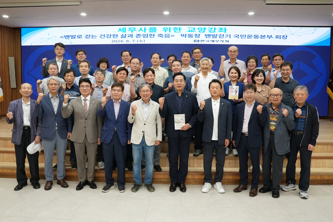 이날 오전 7시 30분부터 한국세무사회 6층 대강당에서 열린 이번 강좌는 '맨발로 걷는 건강한 삶과 존엄한 죽음'을 주제로 맨발걷기국민운동본부 박동창 회장이 강의에 나섰다.