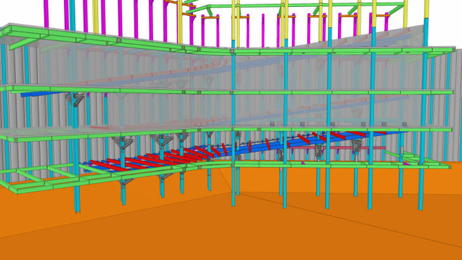 탑다운(Top-Down) 램프슬래브 구축 공법은 탑다운 방식으로 상부에서 하부로 각 층의 슬래브를 구축하는 동시에 경사 램프슬래브를 역타로 시공하는 기술이다. 이 공법은 기존의 지하 구조물 시공 과정 중 램프슬래브 시공의 어려움을 해소하고 건설사에서 중요시하는 공기 단축과 그에 따른 공사비 절감이 가능하다.