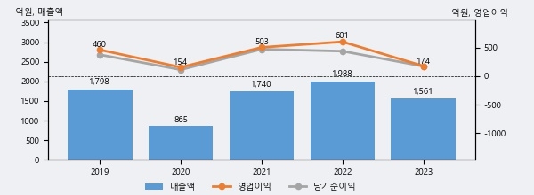 프로텍의 2023년 매출액은 전년대비 -21.5% 줄어든 1561억원이고, 영업이익 역시 전년대비 -71.0% 줄어든 174억원을 기록했다. 이 회사의 매출액 증감률과 영업이익 증감률은 각각 코스닥 하위 19%, 하위 27%에 해당된다.