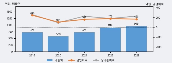 최근 3년간의 실적을 살펴보면 안정적 성장세를 보이고 있다. 최근 3년간 매출로 볼 때 매년 증가하고 있다. 다만 최근에 그 증가폭이 다소 감소하고 있다.