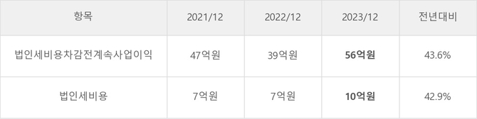 KBG의 지난해 법인세 납부액은 10억원으로 2022년 7억원보다 3억원(42.9%) 증가했다. 이는 실적 증가에 따른 당기순이익이 크게 늘었기 때문이며, 법인세 유효세율(법인세비용/법인세차감전순이익)은 17.9%를 기록했다.