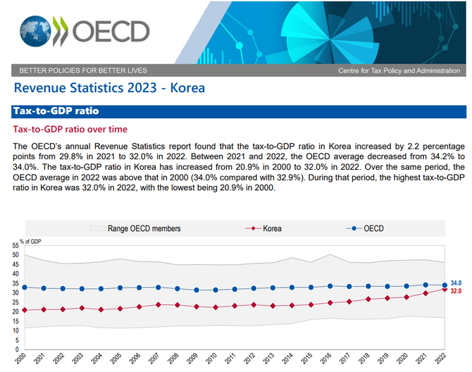 2022년 한국의 ‘국민 조세부담률’ GDP 대비 32.0%는 명백히 윤석열 정부 실적이 아니다.